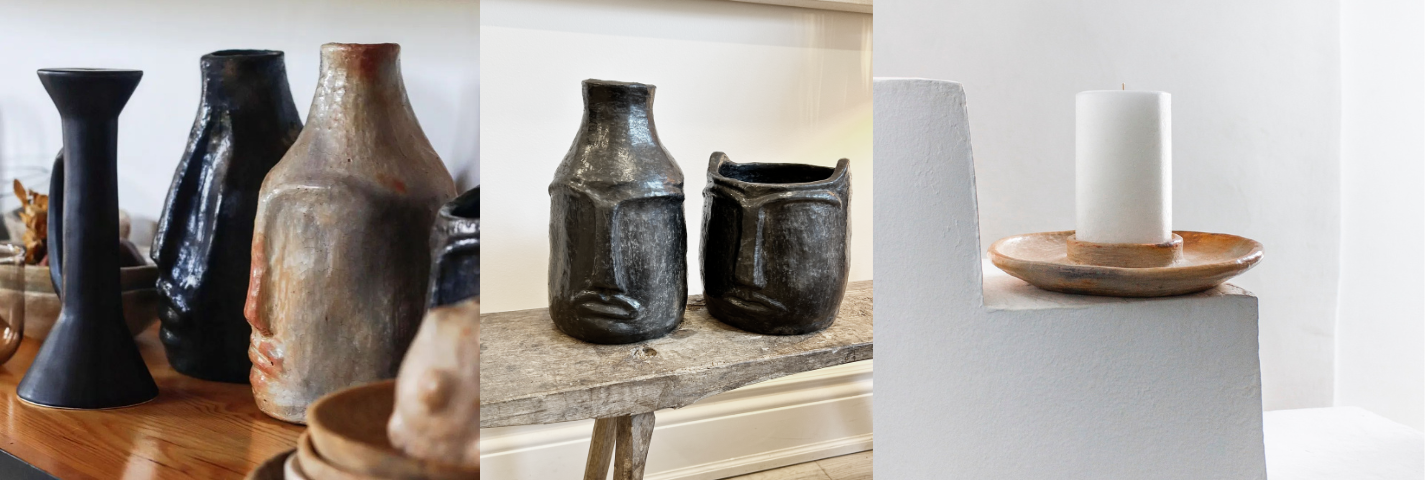Fired in open flames, the pieces emerge with soulful imperfections: subtle ripples, smoky hues, and a warmth that speaks of fire meeting earth.